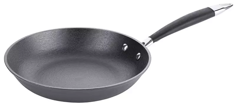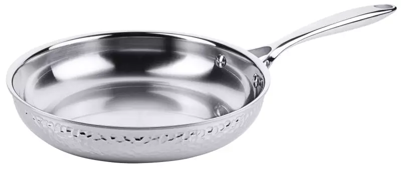 Bratpfanne, Hammerschlag, aus Mehrschichtmaterial mit Edelstahl 18/10, hochglänzend, induktionsgeeignet, in Hammerschlag-Optik, mit genietetem Stielgriff aus Edelstahl