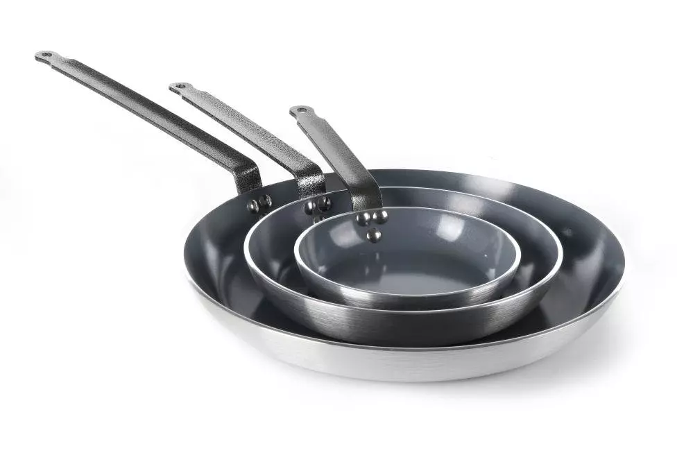 Profi-Bratpfannen aus hartem Aluminiumguss, geeignet für alle Herdarten außer Induktion und für den Einsatz in Öfen. Aluminiumguss zeichnet sich durch schnelle Wärmeaufnahme aus, daher sind die Pfannen in kürzester Zeit einsatzbereit. Der Edelstahlgriff 18/10 nimmt keine Wärme auf. Die „Whitford® Xylan“ Antihaftbeschichtung ist bis 250°C temperaturbeständig. Zwischen Aluminium und der Beschichtung ist eine Schicht Titanium eingearbeitet. Dieses Doppelschichtverfahren erhöht die Lebensdauer und sorgt für zusätzlichen Schutz vor Kratzern. Einfach zu reinigen.