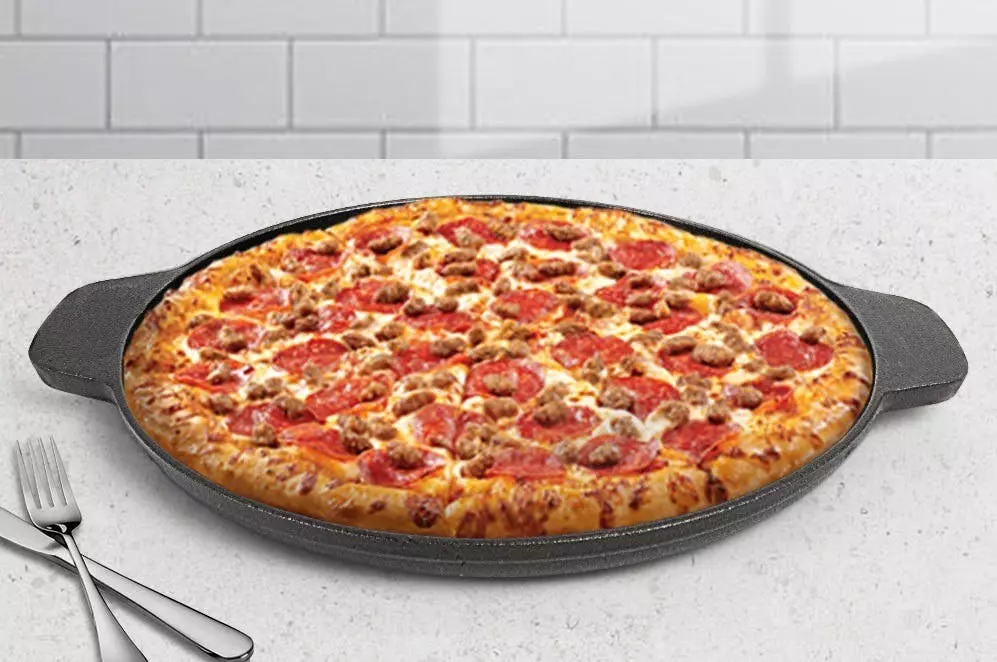Die Pfanne eignet sich bestens als Grillpfanne zum Grillen und Braten aller möglicher Leckereien und natürlich für die Zubereitung von Pizza/Brot.